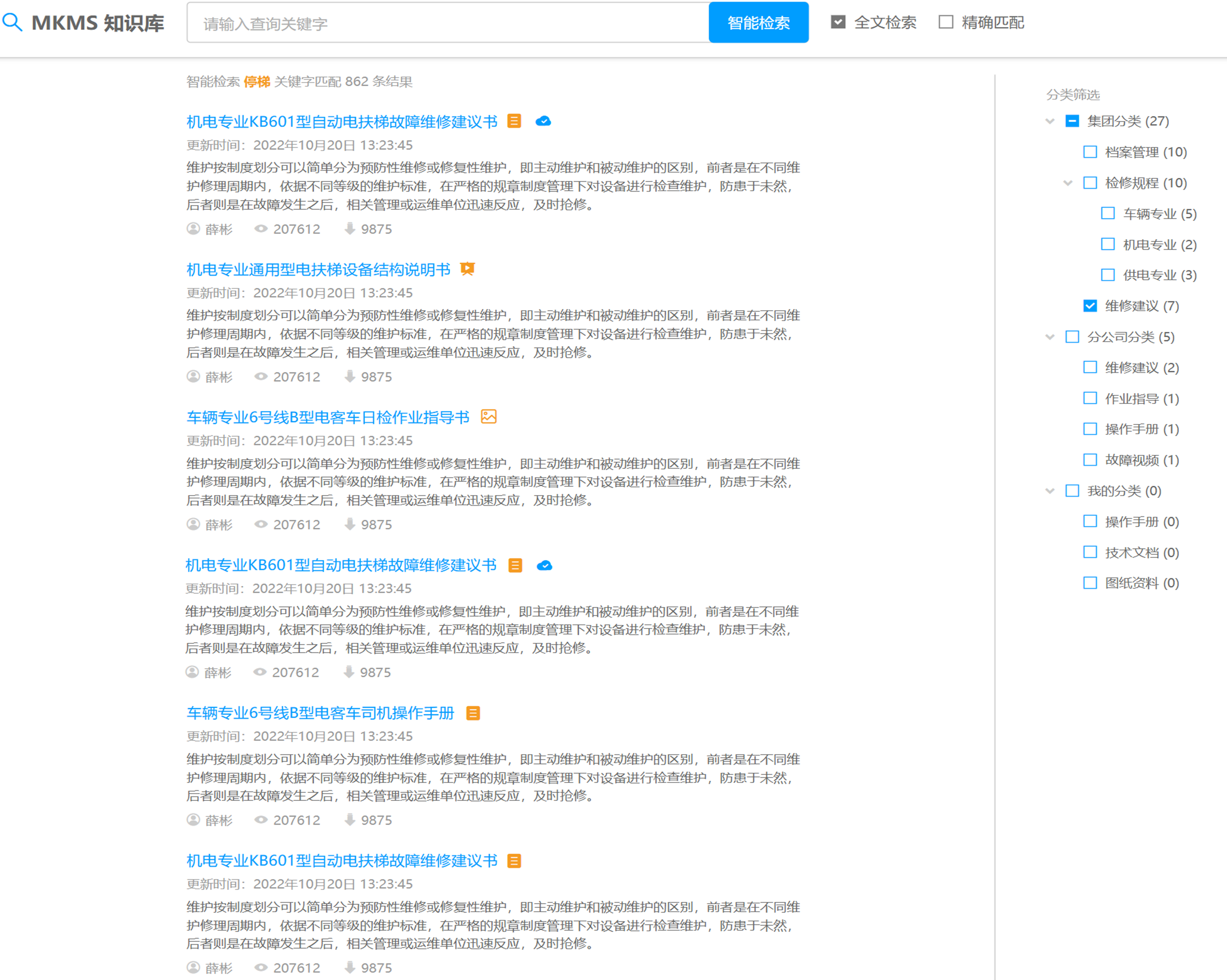 系统化整合企业运营中积累的历史经验、技术资料、专家知识等多模态资源,构建体系化、结构化的企业知识资产库。通过建立科学的分类与共享机制,实现对知识资产的统一管理和高效复用,全面赋能北京地铁“精检细修”与“智能运维”体系,切实帮助企业实现降本增效、加速业务创新与决策智能化。